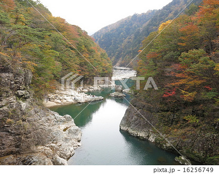 虹見橋から見た紅葉の龍王峡(白龍峡)