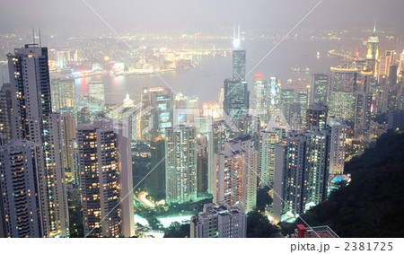香港 高層ビルが立ち並ぶ光景 夕景・夜景