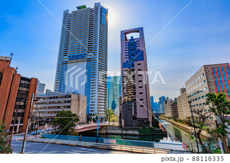 東京 港区芝浦の都市風景 百代橋とキャピタルマークタワー