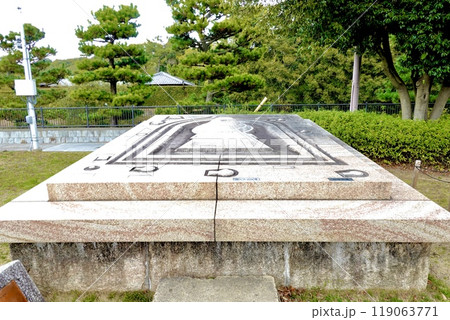 大仙公園の案内図の看板と仁徳天皇陵・履中天皇陵の石碑が立つの風景 大阪府堺市堺区