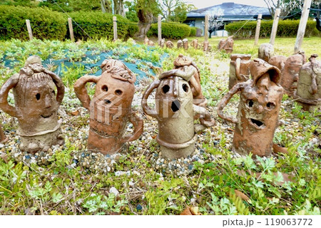 仁徳天皇陵の堀の傍にハニワが並ぶ風景 大阪府堺市堺区