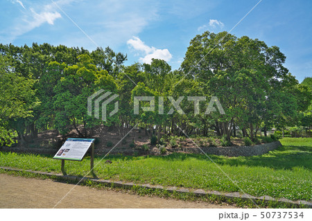 仁徳天皇陵がある大仙公園の大阪みどりの百選の石碑がある風景 大阪府堺市堺区
