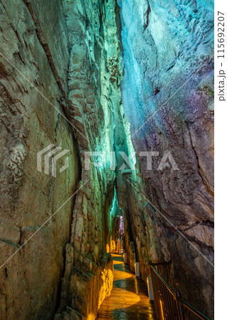 東北・龍泉洞・百間廊下・入口から続く通路を探検気分でワクワクしながら進むイメージ・岩手県岩泉町(1)