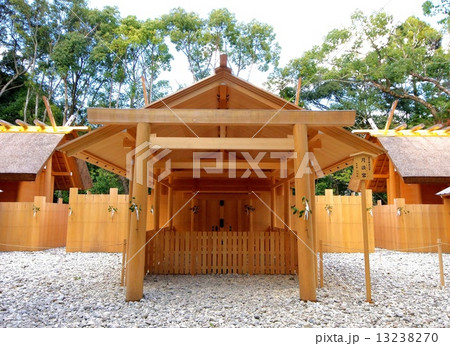 伊勢神宮の内宮の風景 真新しい正宮 遷宮行事 輝く檜の神殿