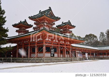 白虎楼・西歩廊と吹雪の景色(平安神宮)