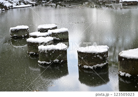 西神苑と中神苑を繫ぐ小川の積雪(平安神宮)