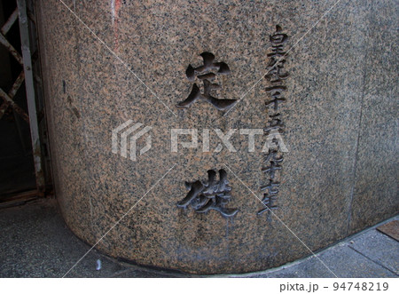 「皇紀」の年号が刻まれた、古いビルの礎石