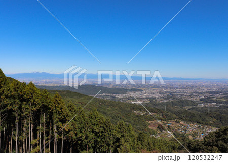 皇鈴山(みすずやま)山頂から見た寄居方面の雄大な眺め 埼玉県東秩父村(ドローンによる空撮)