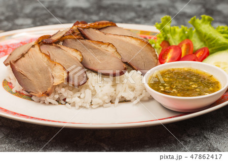 roasted duck meat topping rice with sweet sauce