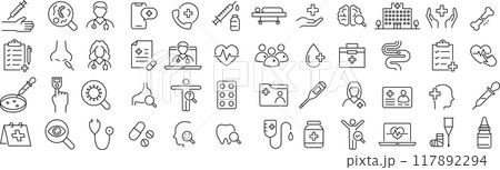 ベクターでモノクロの健康診断に関する線画アイコンセット