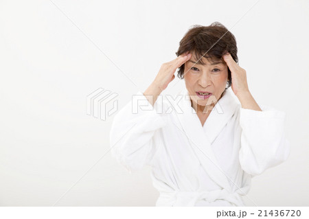 バスロープでお肌の手入れをするシニア女性
