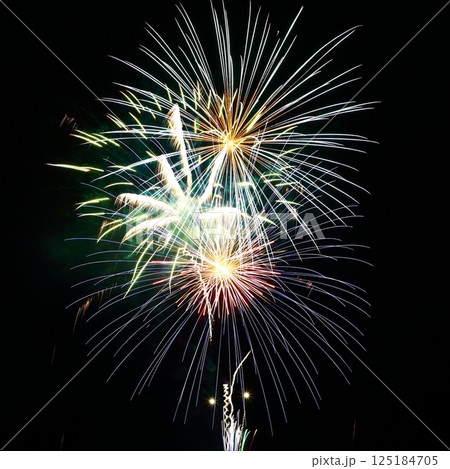 高知市納涼花火大会の放射状に広がる花火