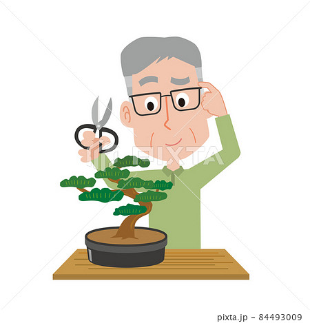 盆栽の選定をする男性のイラスト、日本、趣味