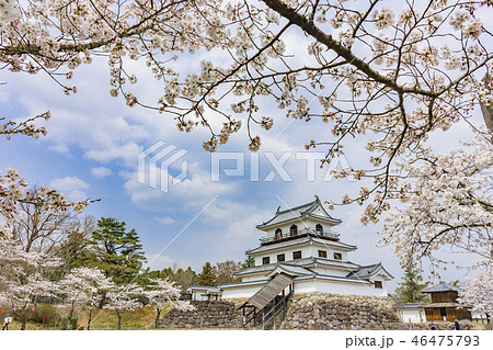 益岡公園の風景 白石城とさくら 宮城県白石市