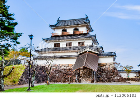 益岡公園の風景 青空と白石城 宮城県白石市