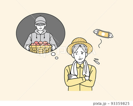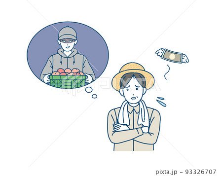 果物泥棒 盗難 被害に遭う農家の男性 桃泥棒 犯罪 窃盗 盗まれる イラスト