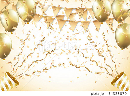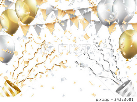 金色 銀色 風船 クラッカー 紙吹雪 旗