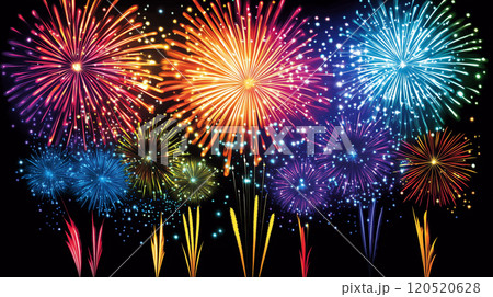 盛大に祝うたくさんの打ち上げ花火のイラスト背景素材