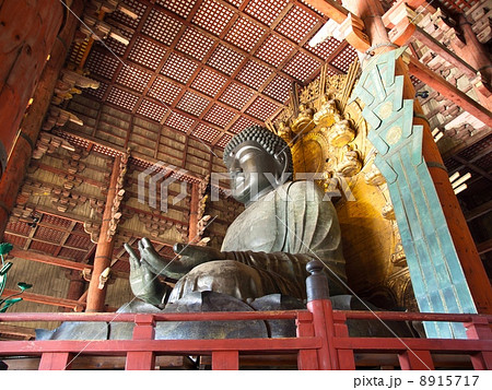 奈良市の東大寺大仏殿(金堂)の本尊である、正面右斜めから見上げた大仏様