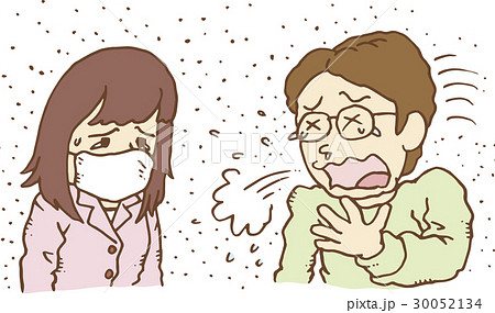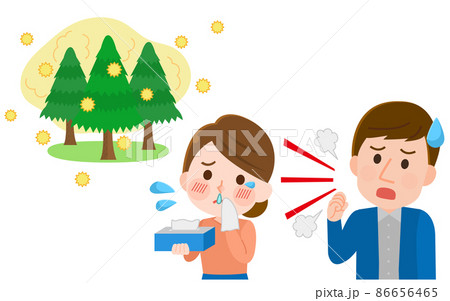 花粉症 鼻水や咳が出る症状の男女 イラスト