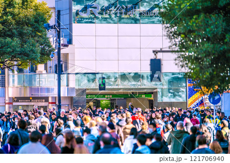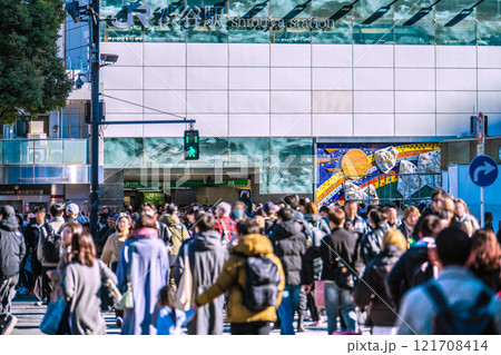 日本の東京都市景観 師走。賑わう渋谷・コロナ禍前と変わらない。脱コロナ、光と影…輝きの時代へ…