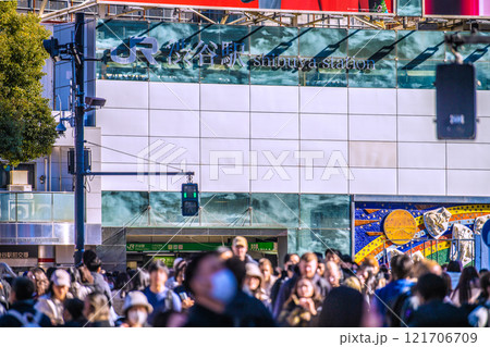 日本の東京都市景観 XEC株…外国人観光客で賑わう渋谷。奥は旧ハチ公改札側…希望の光=2月19日