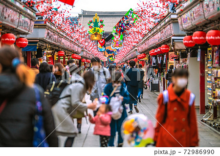 日本の東京都市景観 コロナ禍の年の瀬。浅草寺の人出=2020年12月30日