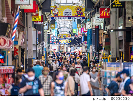 日本の東京都市景観 5773人最多、重症者227人最多。新仲見世には多くの人出、高齢者も=8月13日