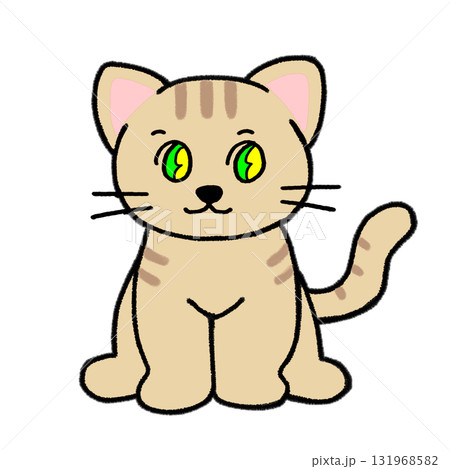 可愛い目がキラキラしたお座りしたトラ猫_全身
