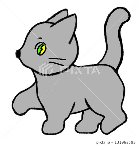 可愛い目がキラキラした歩いているグレー猫_全身