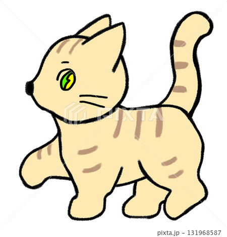 可愛い目がキラキラした歩いているトラ猫_全身