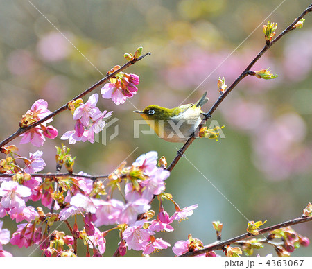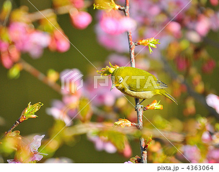 河津桜とメジロ 桜とメジロ 桜 メジロ 目白