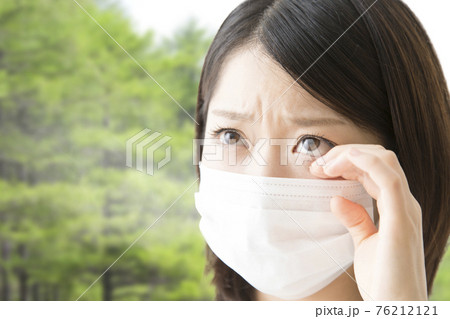 花粉によるアレルギー症状に悩まされる女性 花粉症 目のかゆみ