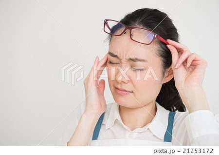 目元のトラブルがつらそうな女性 - 花粉症、アレルギー、感染症