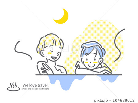 温泉でくつろぐ女性ふたり 女子旅 シンプルでお洒落な線画イラスト