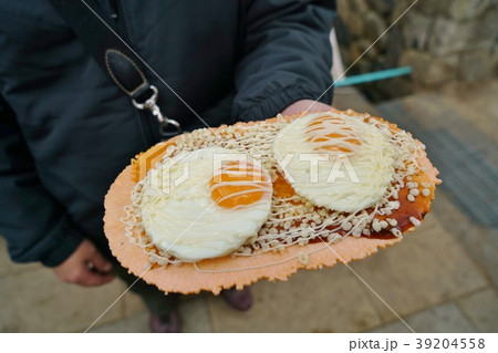 屋台のお好み焼き 目玉焼き入り 鉄板焼き
