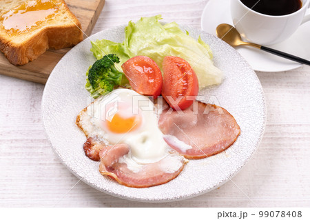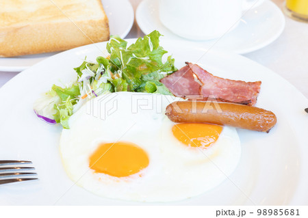 朝食イメージ ( 目玉焼き ウインナー ベーコン コーヒー )