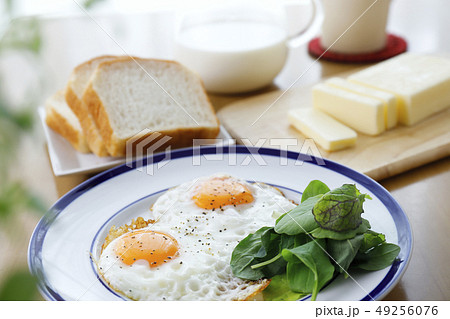 朝食イメージ ( サラダ 目玉焼き ウインナー ベーコン )