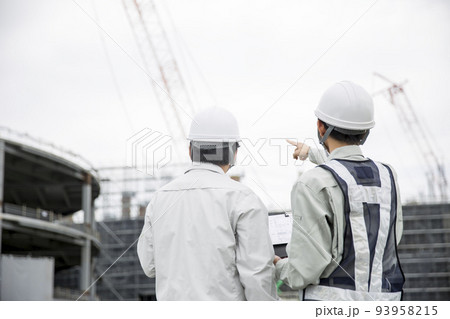 日本人の仕事風景、現場監督 後姿 施工管理 新人教育