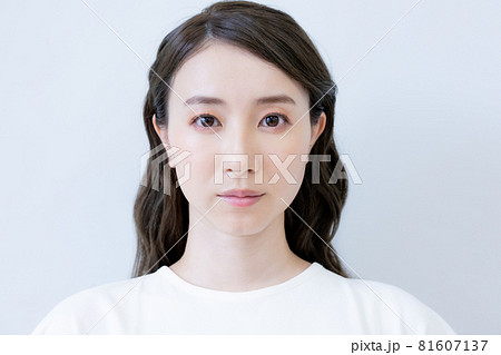 白バックの若い女性の顔のポートレート 撮影協力:中央工学校付属日本語学校