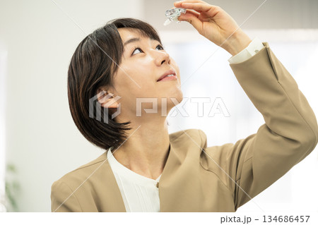 目薬をさす若い女性 女の子 ライフスタイル 女性ポートレート
