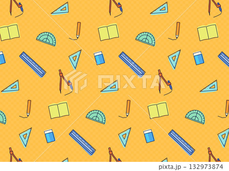 算数文具のかわいいシームレス背景_オレンジ