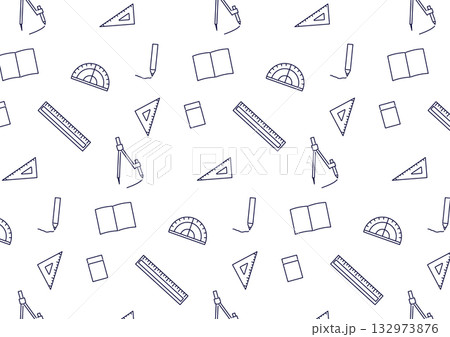 算数文具のかわいいシームレス背景_モノクロ線画