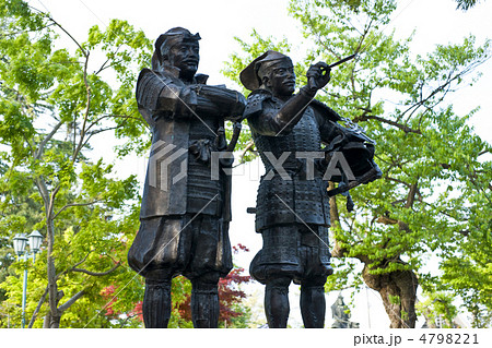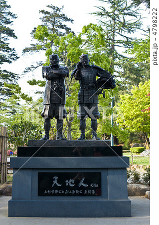 松が岬公園にある「上杉景勝 直江兼続」の像