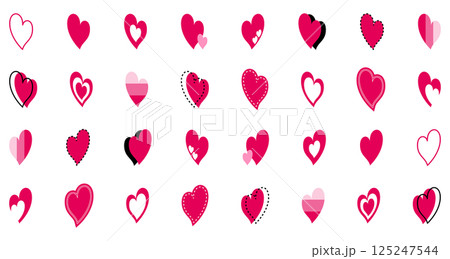 シンプルなデザインの ハートのアイコンのセット