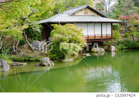初夏の相楽園の風景 池越しに見る茶室・浣心亭3 兵庫県神戸市中央区