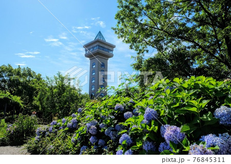 相模原麻溝公園の紫陽花と展望タワー