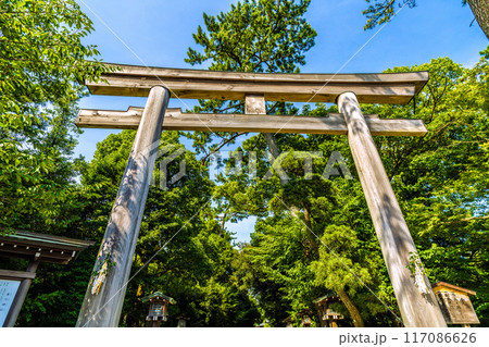 日本の寒川都市景観 相模國一之宮 寒川神社。天皇皇后両陛下幣饌料御下賜記念植樹=令和6年7月21日