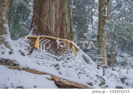 貴船神社 雪景色の相生杉