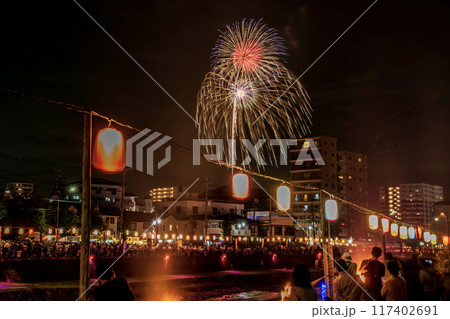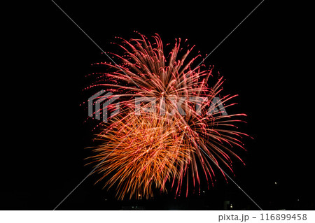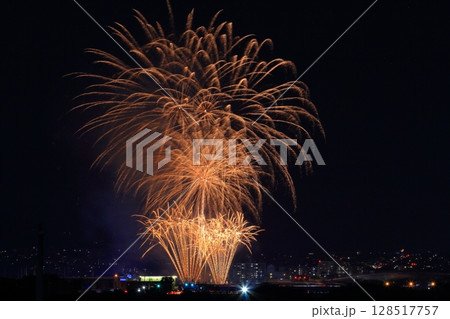 夏の夜空に映える夏の風物詩 打ち上げ花火風景 (鮎祭り花火大会 甲佐町)